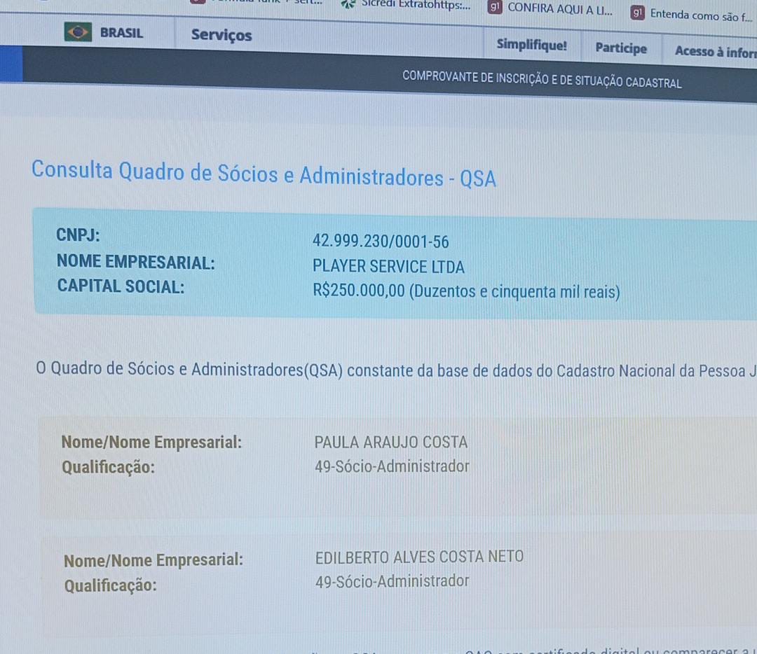 A mesma Paula Araújo Costa é sócia da Player Service Ltda