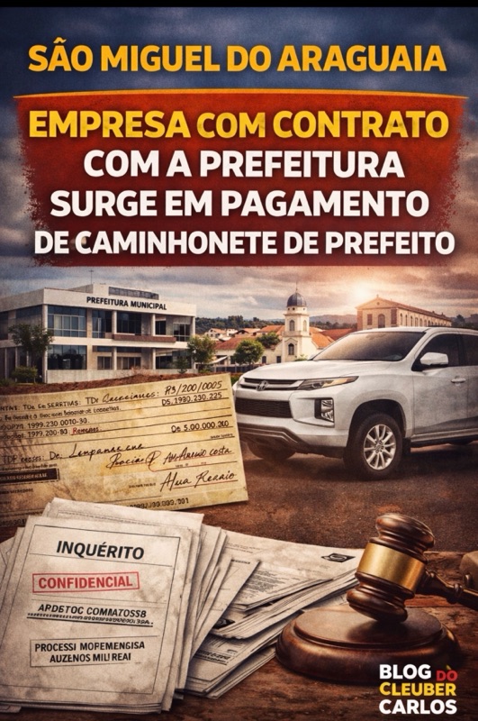 DINHEIRO DE EMPRESA LIGADA A CONTRATO DE R$ 1,9 MILHÃO COM A PREFEITURA APARECE EM PAGAMENTO DE CAMINHONETE DE PREFEITO EM SÃO MIGUEL DO ARAGUAIACheque de R$ 200 mil, contrato público, sócia em comum e transação privada formam um encadeamento que exige explicação urgente