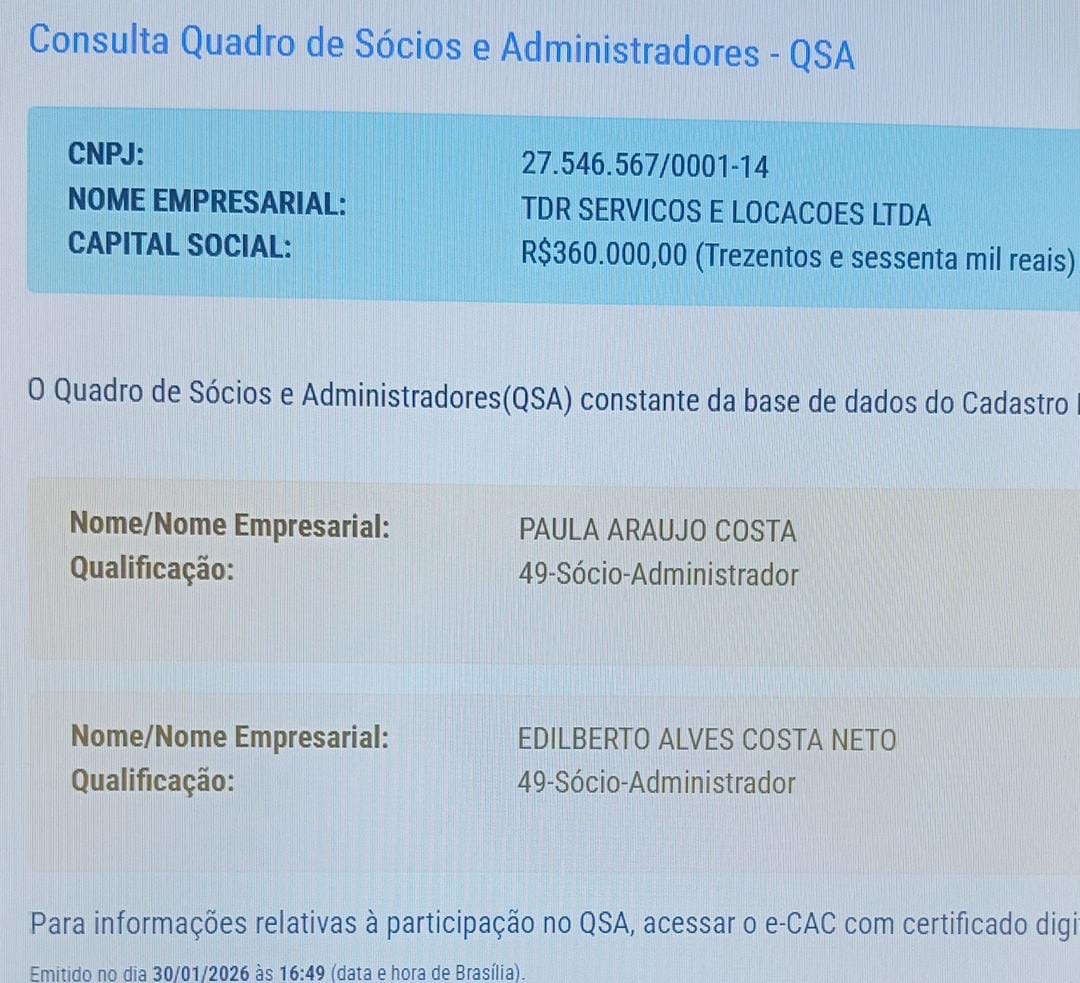 A TDR Serviços e Locações possui como sócia Paula Araújo Costa.