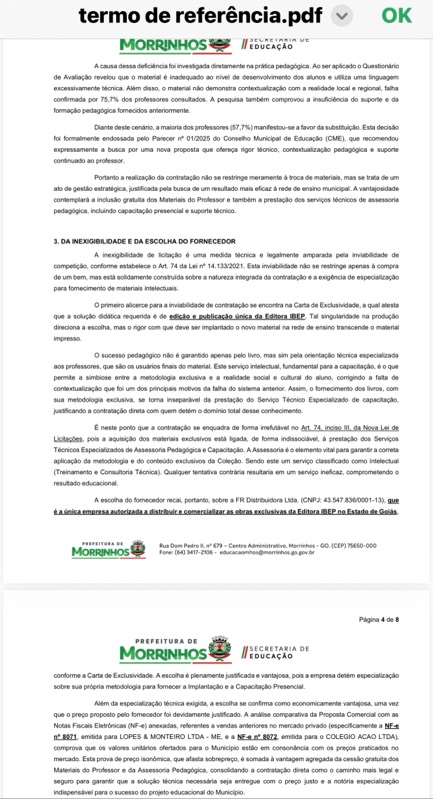 Porque, segundo o próprio TR, o que tornaria a contratação única não é apenas o livro — é a metodologia + assessoria + formação docente.