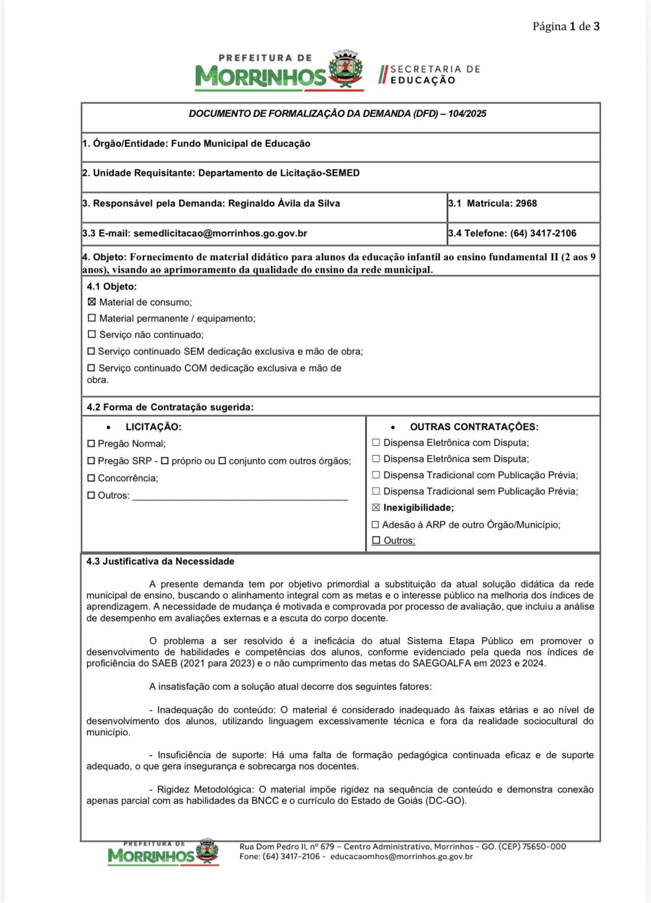 O que era apresentado como uma simples “substituição de material didático” na rede municipal de ensino de Morrinhos (GO) começa a revelar uma engenharia contratual que merece apuração rigorosa dos órgãos de controle.