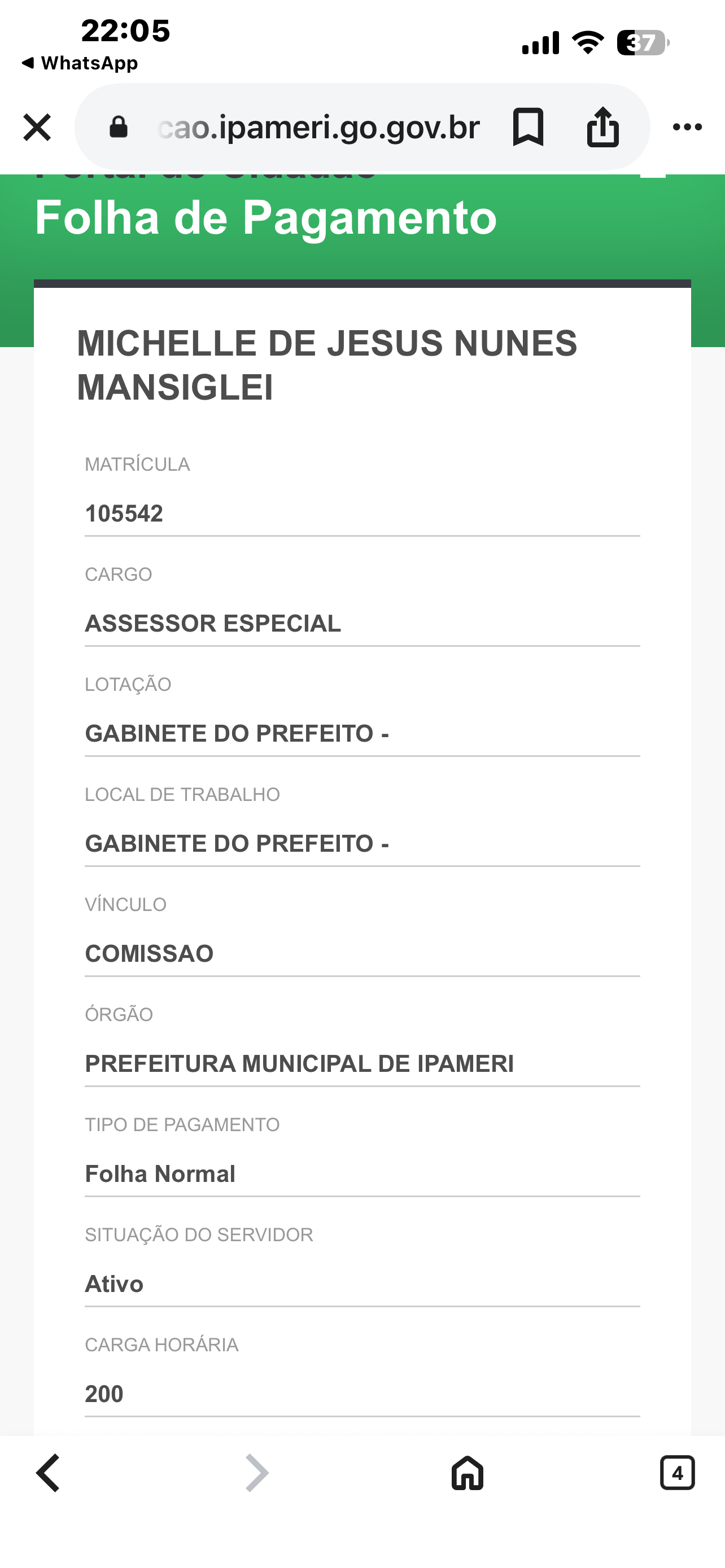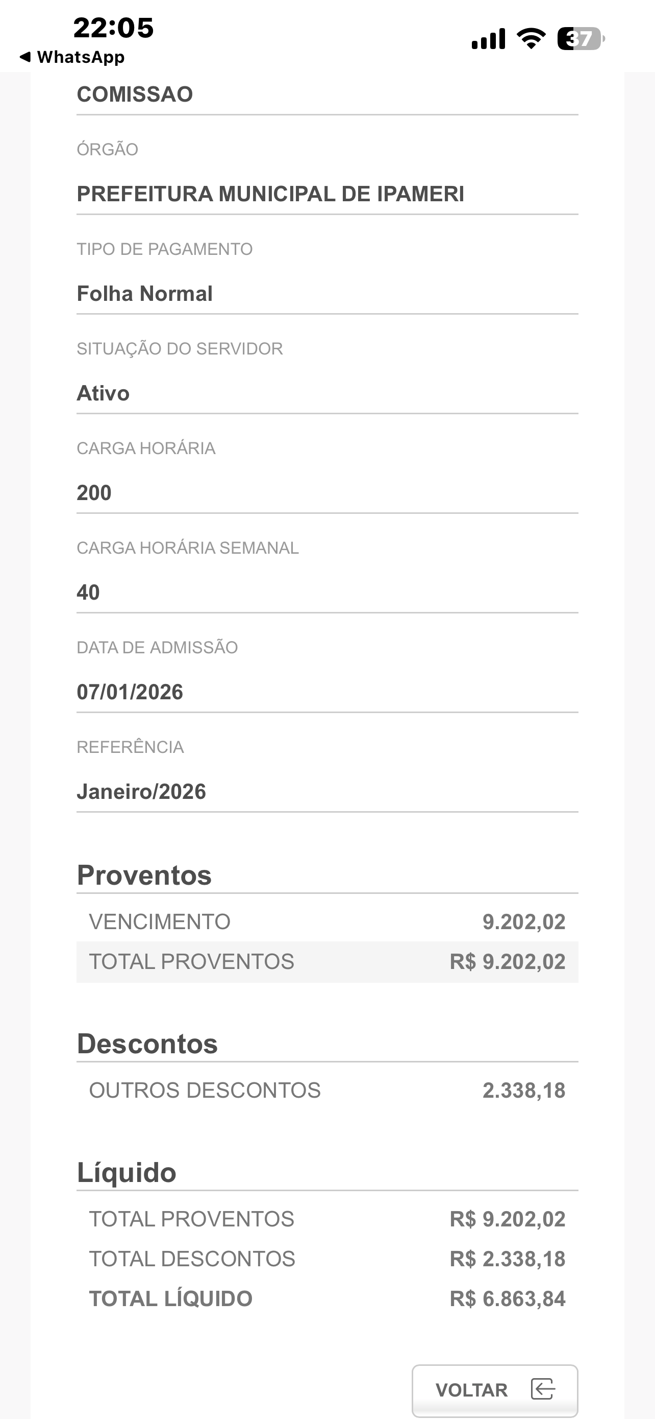 Em janeiro de 2026, os registros oficiais da Folha de Pagamento da Prefeitura de Ipameri mostram que a mesma pessoa reaparece agora como: