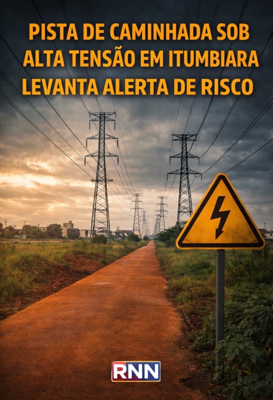 O que foi apresentado como obra urbana de lazer começa a assumir contornos de imprudência técnica. A construção de uma pista de caminhada na Avenida Celso Maeda, em Itumbiara (GO), exatamente sob duas linhas de transmissão de energia de alta tensão, desloca o debate da política para a segurança pública.