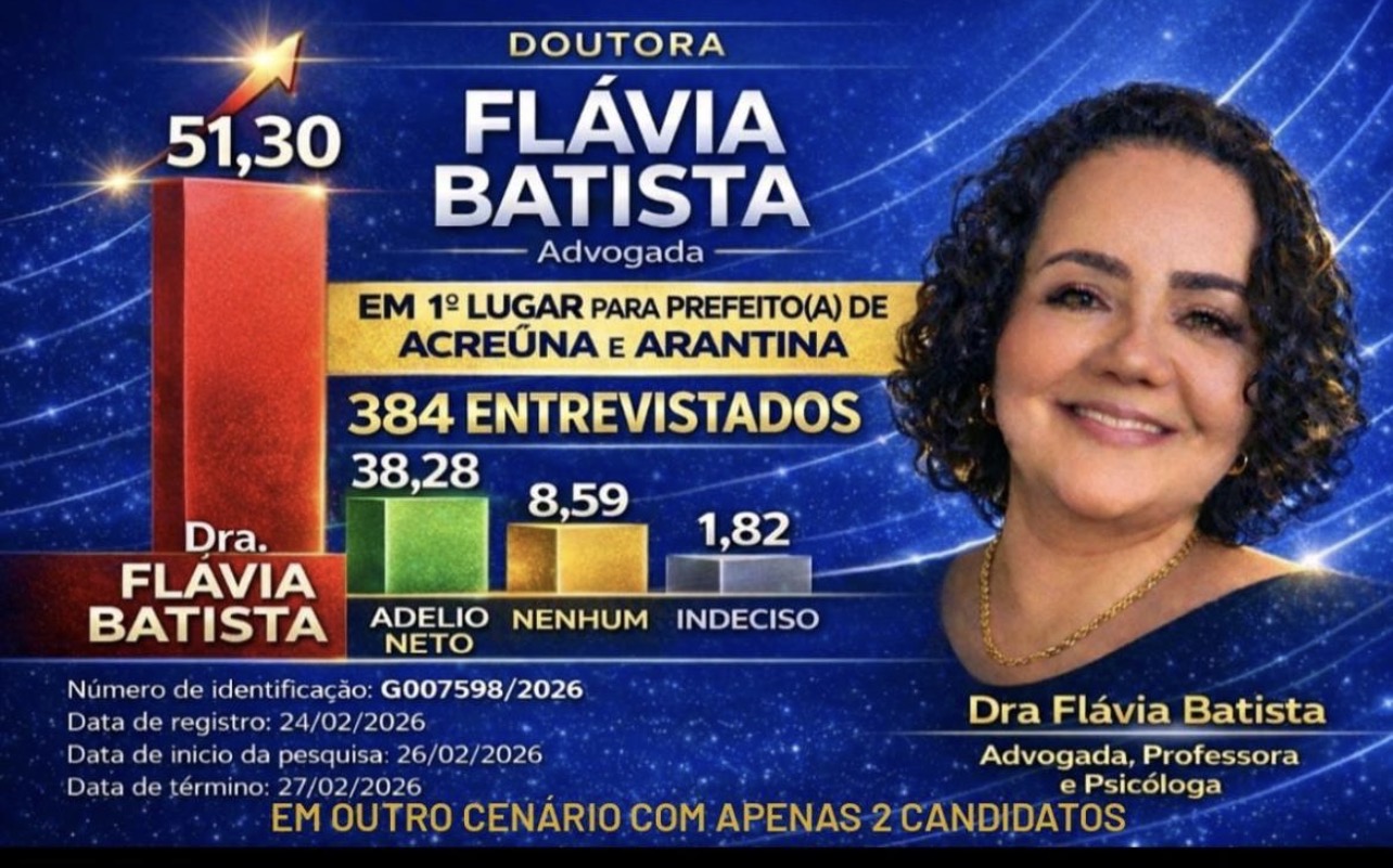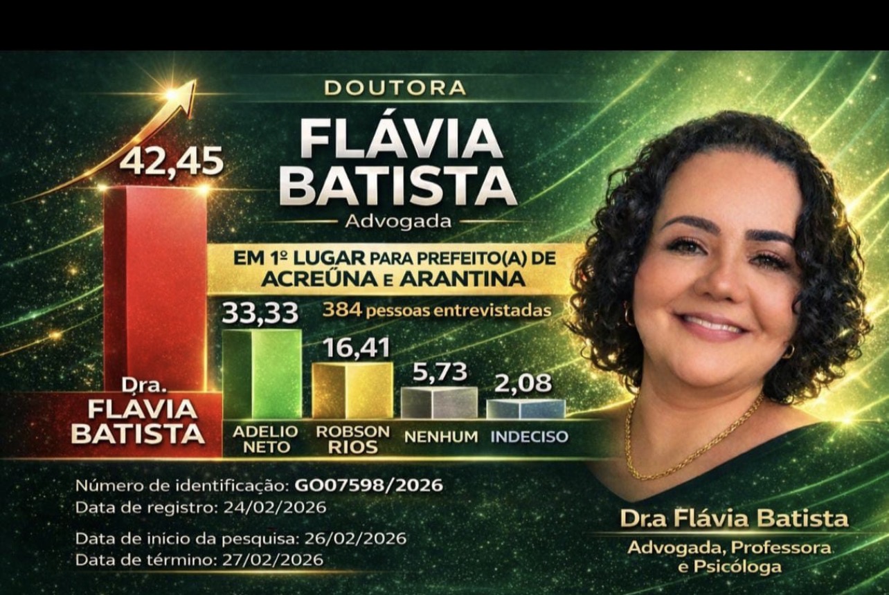 ACREÚNA: PESQUISA REGISTRADA EXPÕE O TABULEIRO — LULA NA FRENTE NA CIDADE, MARCONI LIDERA ENTRE OS ELEITORES E Dra FLÁVIA BATISTA SURGE COMO O FATO NOVO DA POLÍTICA LOCAL