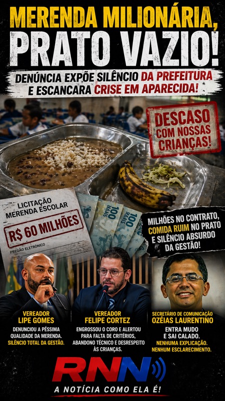 O que era para alimentar crianças virou um retrato brutal de descaso.Uma licitação de R$ 60 milhões está no centro de denúncias que colocam a merenda escolar de Aparecida de Goiânia sob suspeita — e o mais grave: a gestão simplesmente se cala.