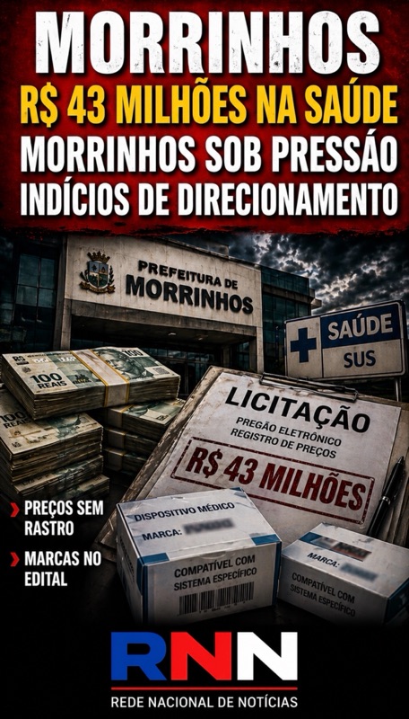 Em menos de quatro dias, a Prefeitura de Morrinhos colocou na rua dois pregões eletrônicos que, somados, ultrapassam R$ 43 milhões em estimativas para a área da saúde. O volume, por si só, já exigiria atenção redobrada. Mas o que emerge da análise técnica dos documentos é ainda mais sensível — e potencialmente mais grave.
